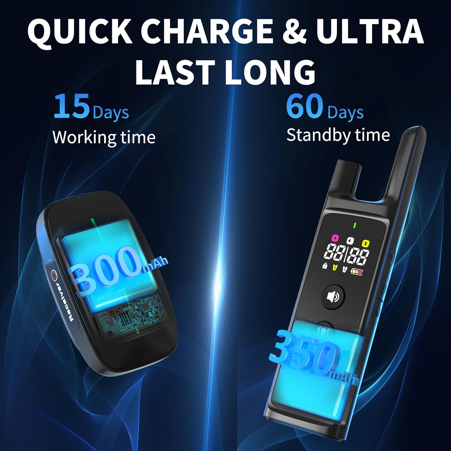 - 【Fast Response Speed & Super Easy to Use】 Dog shock collar with remote upgraded smart AI chip to enhance 8X faster response time. Click the button, the signal will be transmitted to the collar within 0.01S, up to 3300ft remote range. Ensuring your commands are accurately and immediately communicated. This enables your furry companion to understand without confusion. With large buttons and a clearer, larger display. The battery life of both the remote and receiver is shown on the screen.