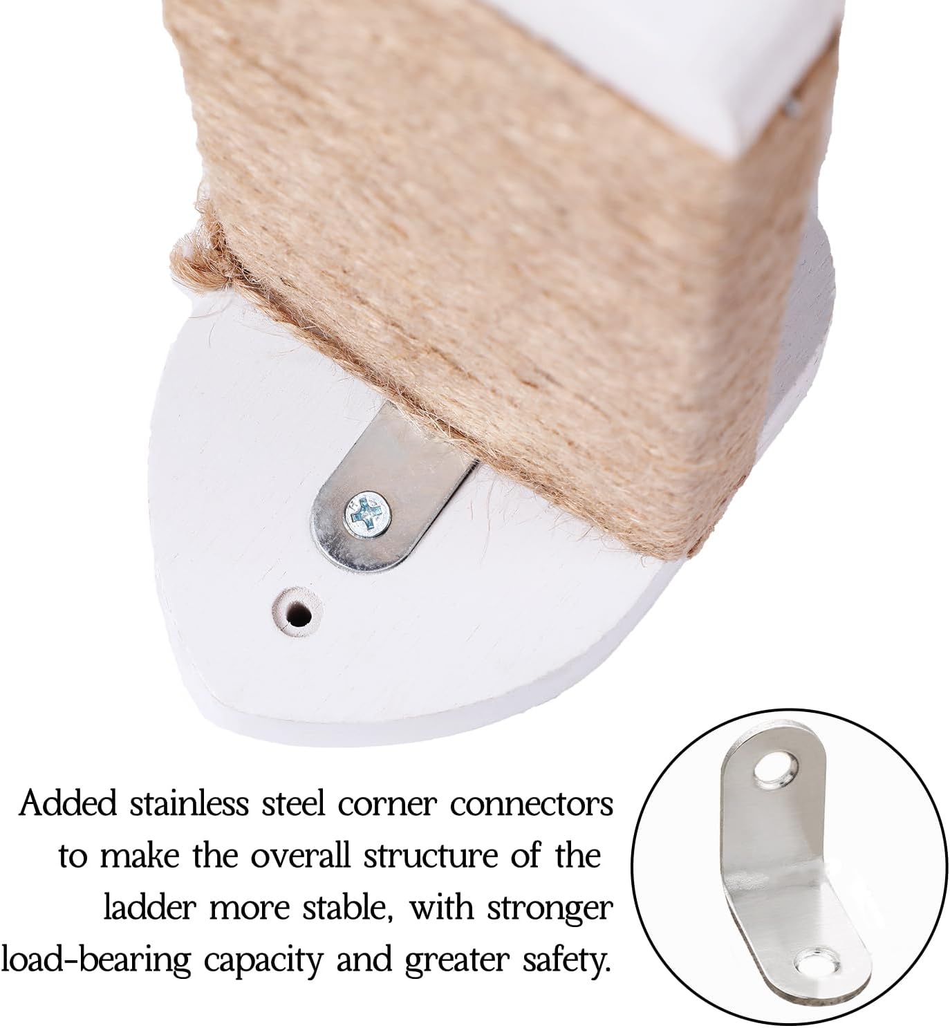 3-in-1 Cat Wall Steps with Hemp Rope, Solid Wood Cat Ladder for Climbing and Playing (Large-White)