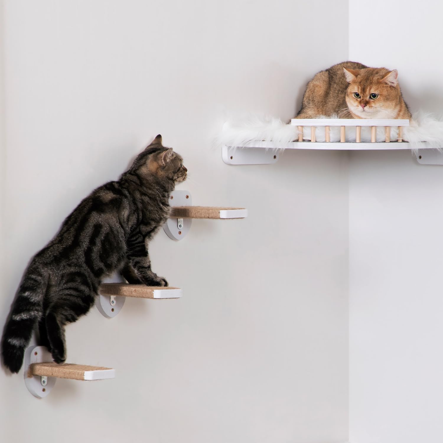 - 【Great Gift Choice】 Our cat shelves for wall are meticulously handcrafted by artisans, dedicated to providing excellent craftsmanship and ensuring the happiness of cats. Our feline-friendly wall-mounted cat ladder is designed with both functionality and style in mind, making it an ideal and valuable gift for cat lovers. Should you encounter any problems, do not hesitate to reach out to us.