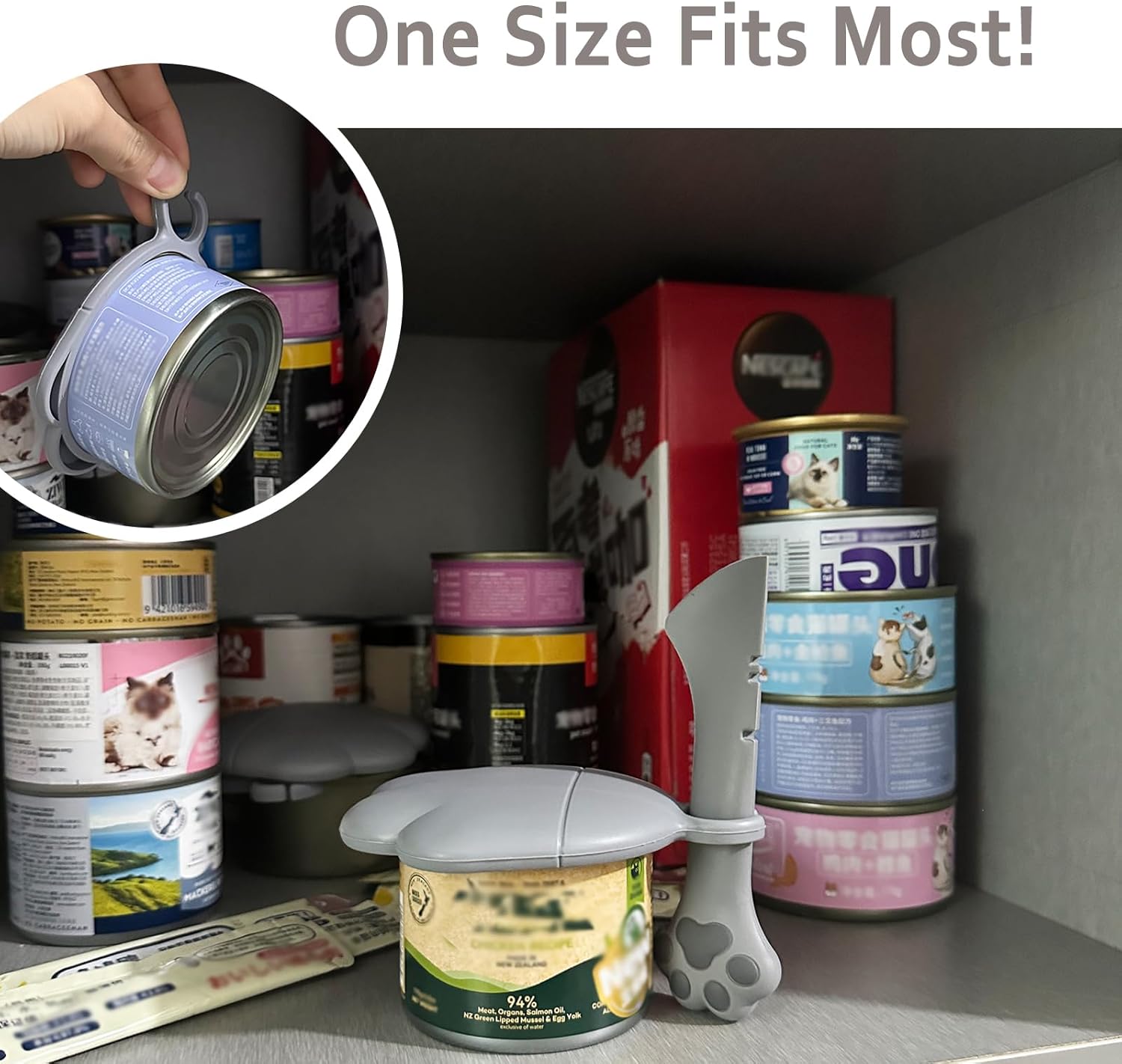 3 Pcs Cat Food Can Covers & One Can Opener | Cute Paw Shape Can Covers and Opener Spatula Cat Wet Food Spoon | Universal BPA Free Silicone Can Food Spoon & Covers for Dog Cat Cans(Grey)