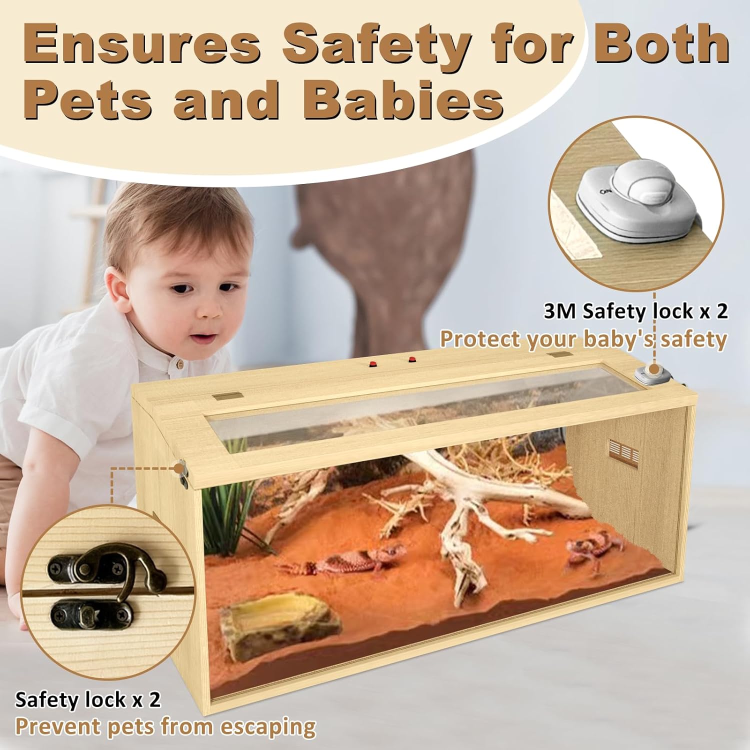 - Safety for reptiles: Our lizard tank is made with thickened materials to ensure stability and durability. It is equipped with bronze locks and child safety locks as optional features, ensuring extra safety and preventing pet escapes. These safety features make it suitable for households with babies and other pets. Choose Nalwort, the preferred choice for happy reptiles