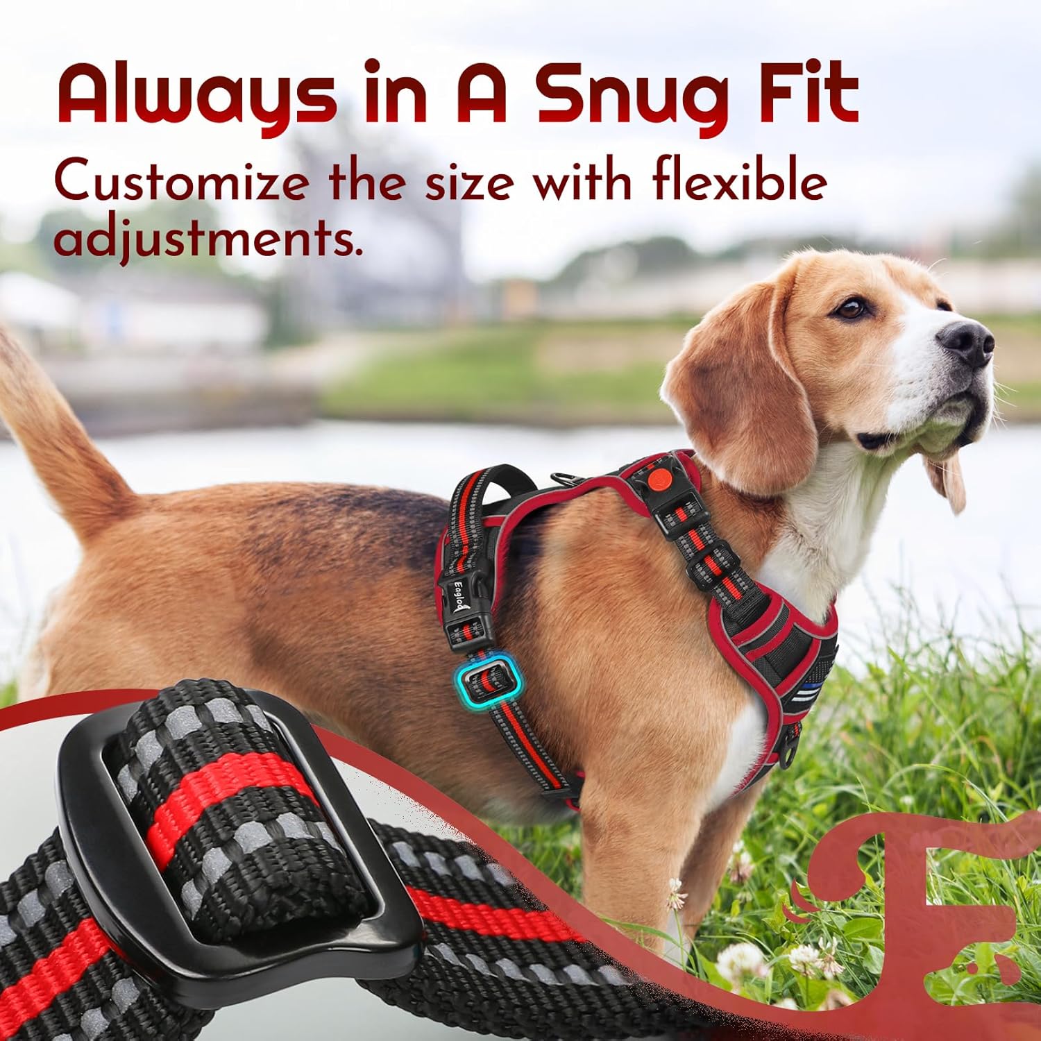 Eagloo Dog Harness Small Sized, Easy Wearing with 3 Buckles, Adjustable No Pull Pet Harness with 2 Rings for Walking, No Chock Reflective Soft Padded Vest with Control Handle, Black & Red, S