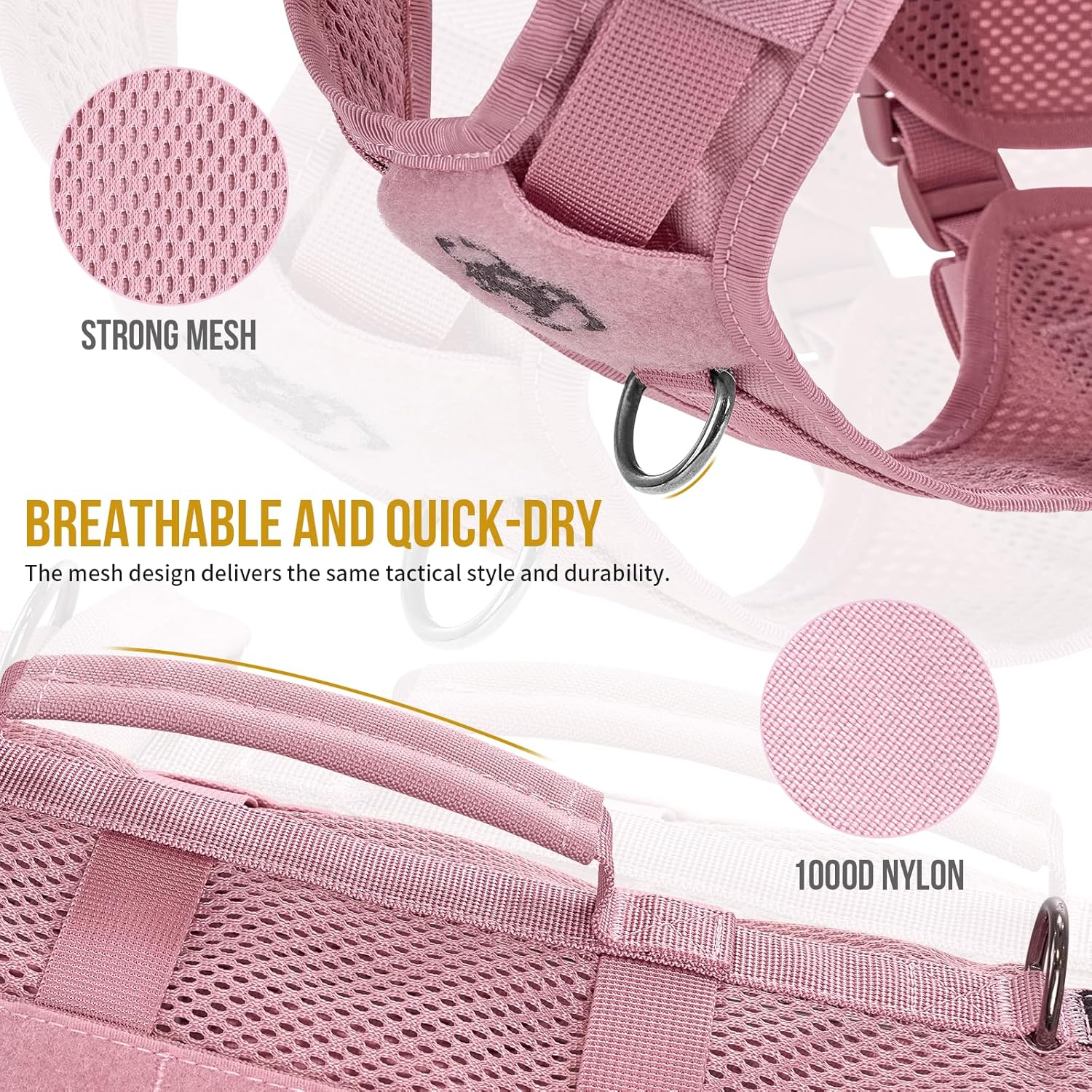 - [Mesh Design]: Breathable and quick to dry for all seasons, mesh design with the same tactical style and durability. Rugged 1000D nylon offering great dirt/water/abrasion resistance.