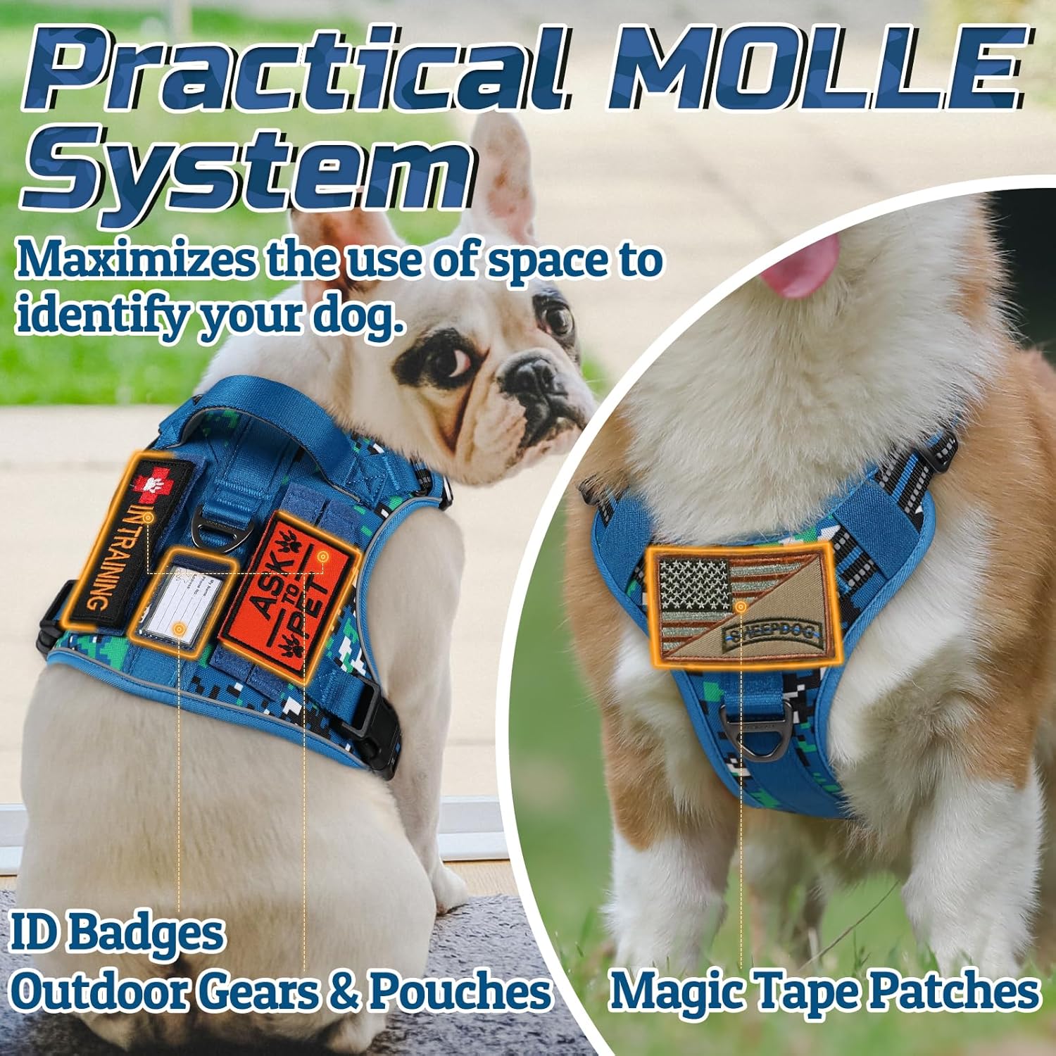 rabbitgoo Tactical Dog Harness for Large Dogs, No Pull Military Service Vest with Handle & Molle, Easy Control for Training Walking, Adjustable Reflective Straps, Blue Camo, L