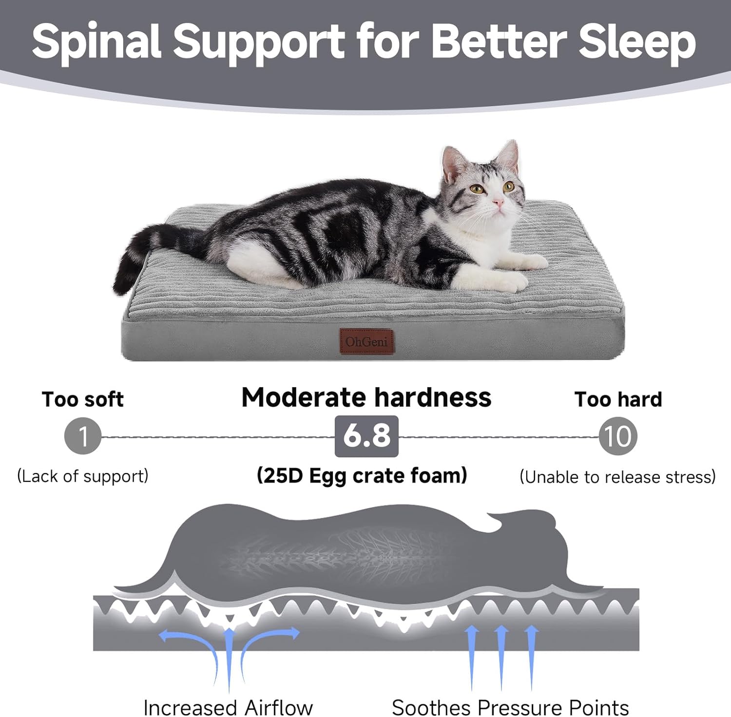 - Luxurious Comfort & Durability: Enjoy premium quality materials – plush corduroy surface with a 2-3 mm hair length, bonded with TPU for water resistance, and 25D Egg Crate Foam. Rest assured, our beds pass rigorous CP65 testing, ensuring safety and comfort for your pet.
