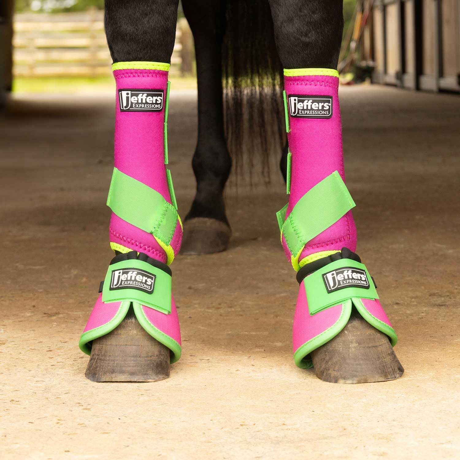 Jeffers Equine Neon Horse Boots – 1 Pair – Pink & Lime – Small Size – Breathable Neoprene, Secure Strap Closures – Durable Protection for Front & Hind Legs, Training, Trail & Riding Use
