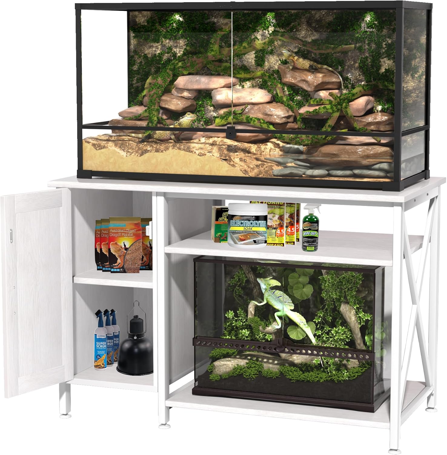 - Suitable for 120-Gallon Reptile Tanks - This terrarium stand is specially designed for 120-gallon reptile tanks, with a tabletop size of 48 x 24 inches. Sturdy and durable, it can support up to 1100 lbs, making it the perfect choice for a reptile tank stand. It provides a safe and stable habitat for your reptile pets. (Note: Does not include the water tank.)