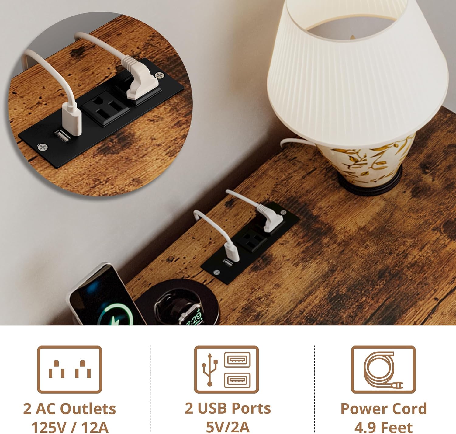 - CHARGING STATION & STORAGE: The top panel features a power strip with 2 USB ports and 2 AC outlets for charging your phones or your dog's electronic toys. The tabletop can hold a lamp, while the flip-top drawer keeps toys, accessories, and pet essentials organized and within reach