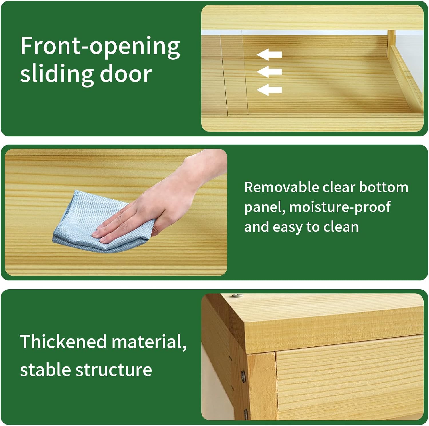 - Natural Solid Wood: Crafted from solid wood and clear acrylic, the FHNI reptile tank offers durability and elegance. The wooden lizard tank provides excellent insulation and soundproofing, ensuring a stable habitat for leopard geckos, bearded dragons, and snakes