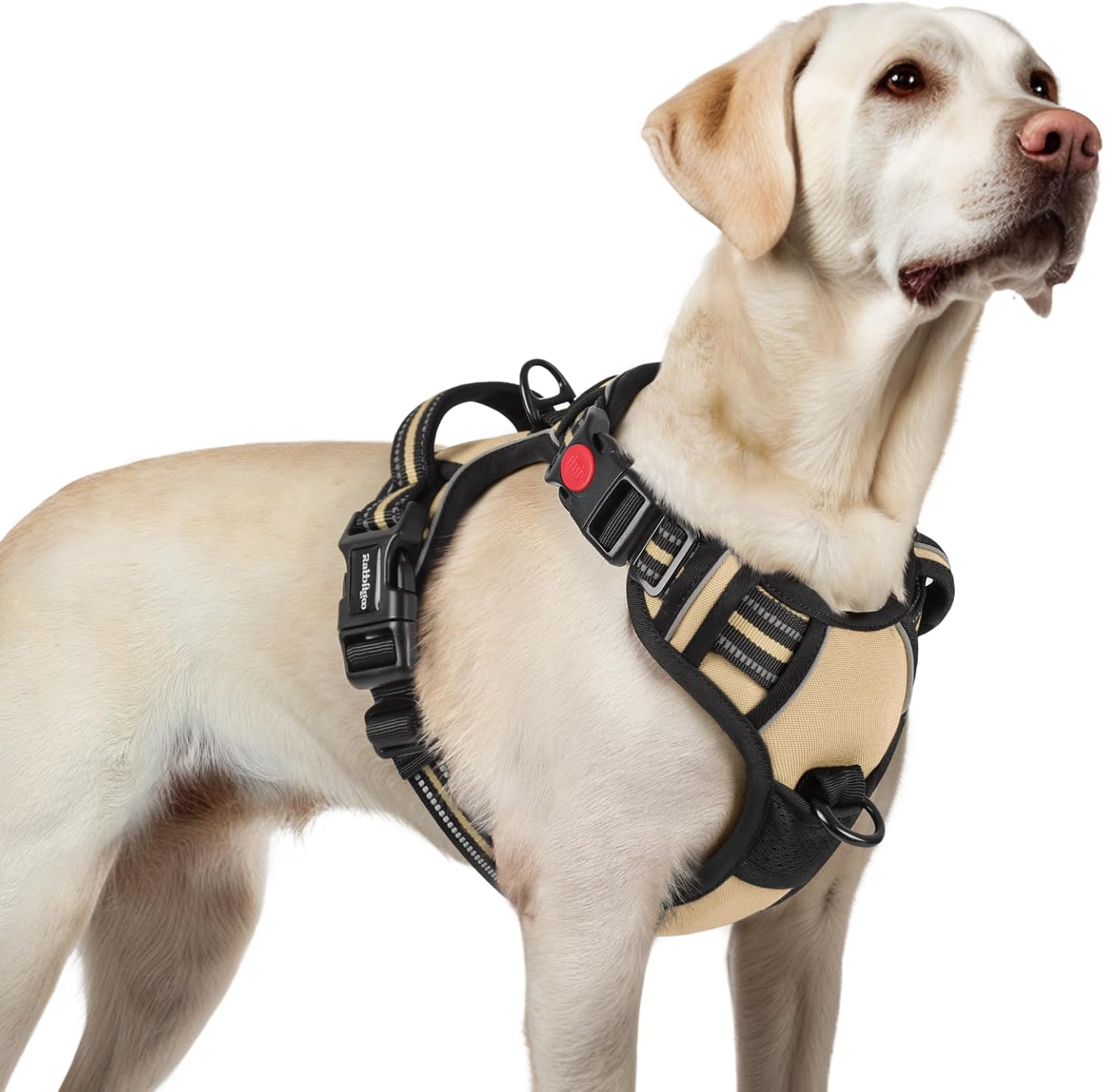 rabbitgoo Dog Harness for Large, No Pull Pet Harness with 3 Buckles, Adjustable Soft Padded Vest with Control Handle, Walking Reflective Pet Vest for Large Dogs, Beige, L