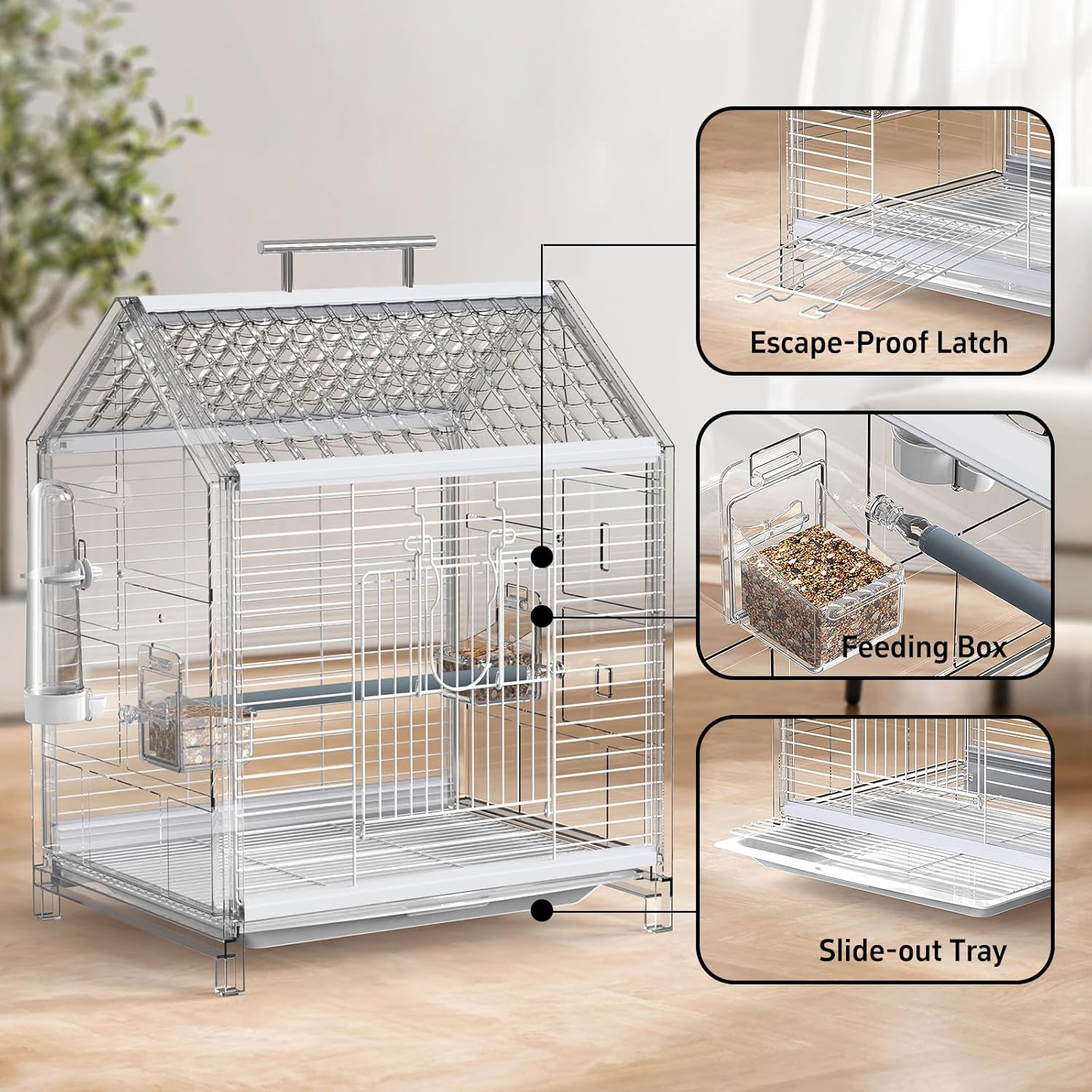 20.5 inch Pet Small Bird Cage, Parrot Cage, Portable Bird Carrier, Temporary Bird Cage in Car, for Home, Outing, Pet Clinic, Temporary Placement, for Small Medium Birds, Clear