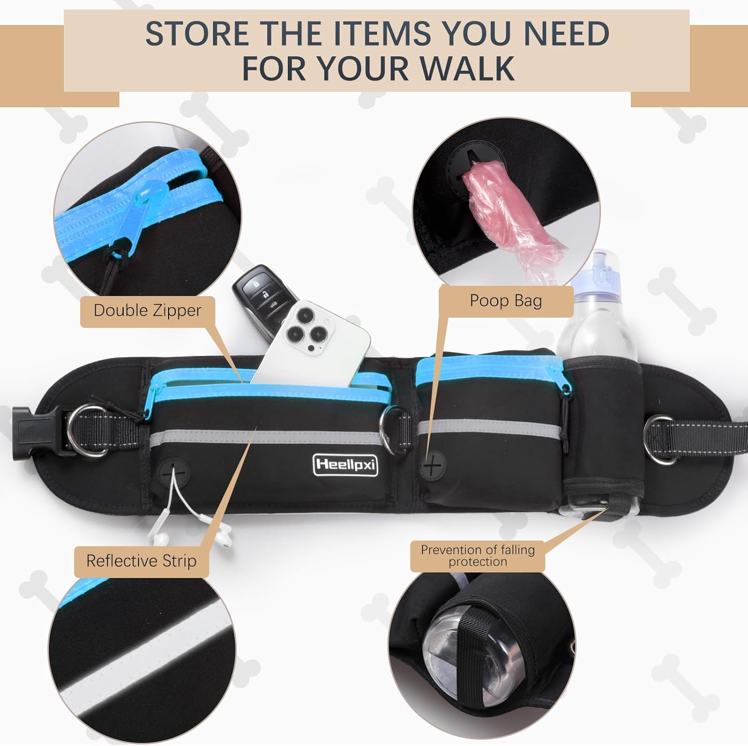 - Convenient and Practical: Our waist pack features a built-in phone pocket for safe storage of your phone, keys, or other small essentials. The water bottle holder allows you and your furry friend to stay hydrated during your adventures. Additionally, the poo strap hole provides easy access to trash bags when needed, making clean-up a breeze