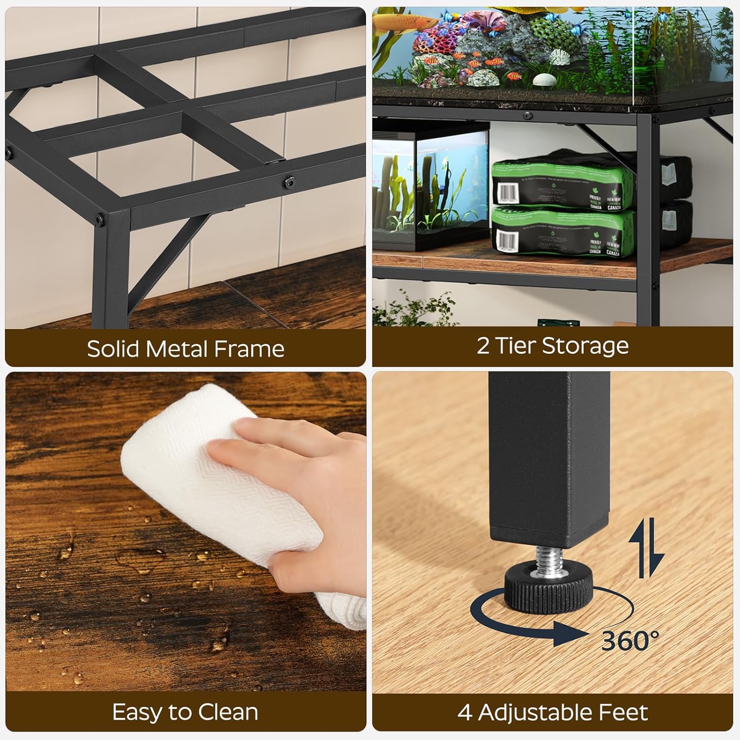 - Versatile Functionality: Not just for fish tanks, the aquarium rack can also hold glass containers, reptile tanks, etc. Perfect for bedroom, living room, office, and more, it doubles as a storage rack for books, plants, printers, and other items