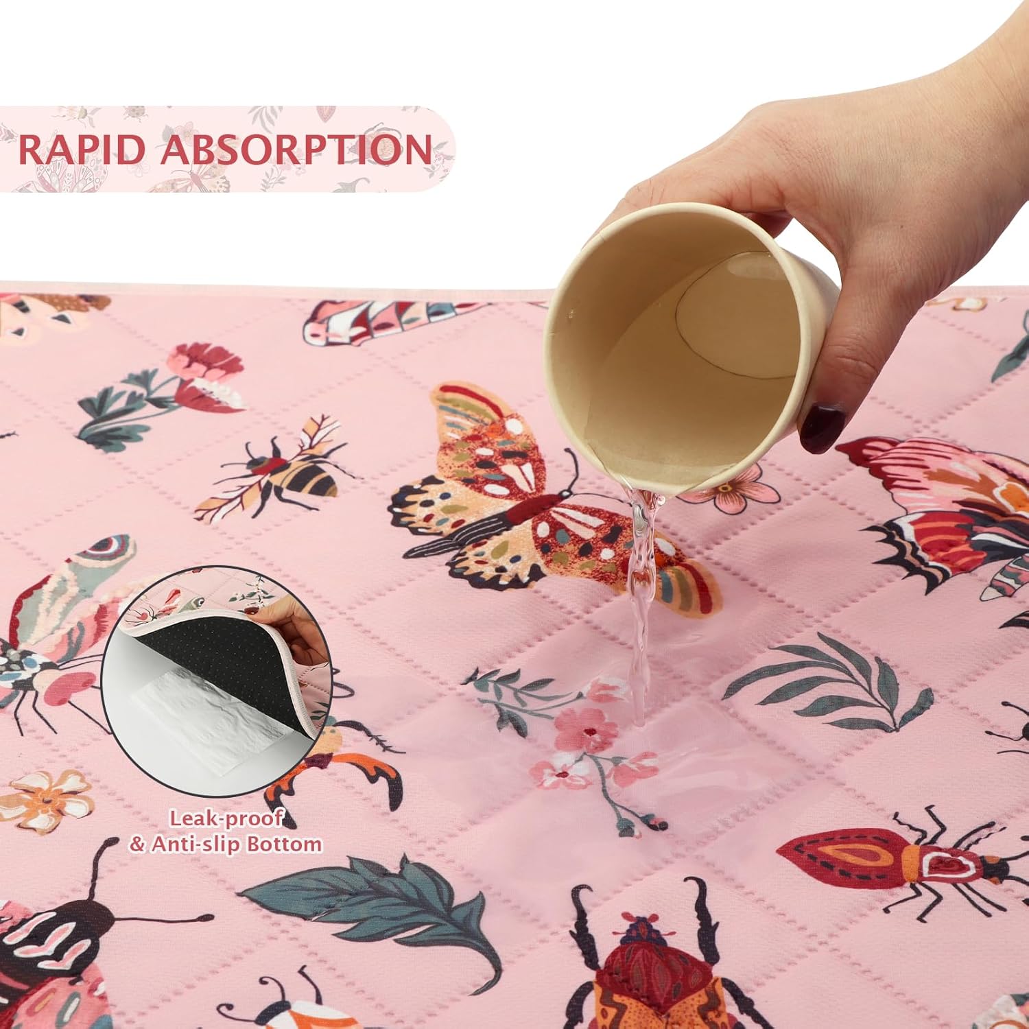 IEUUMLER Washable Pee Pads for Dogs, 1 Pack Insect Pattern Reusable Waterproof Puppy Potty Pads, Non-Slip Absorbent Pet Training Pads for Playpen Crate Bed EU014