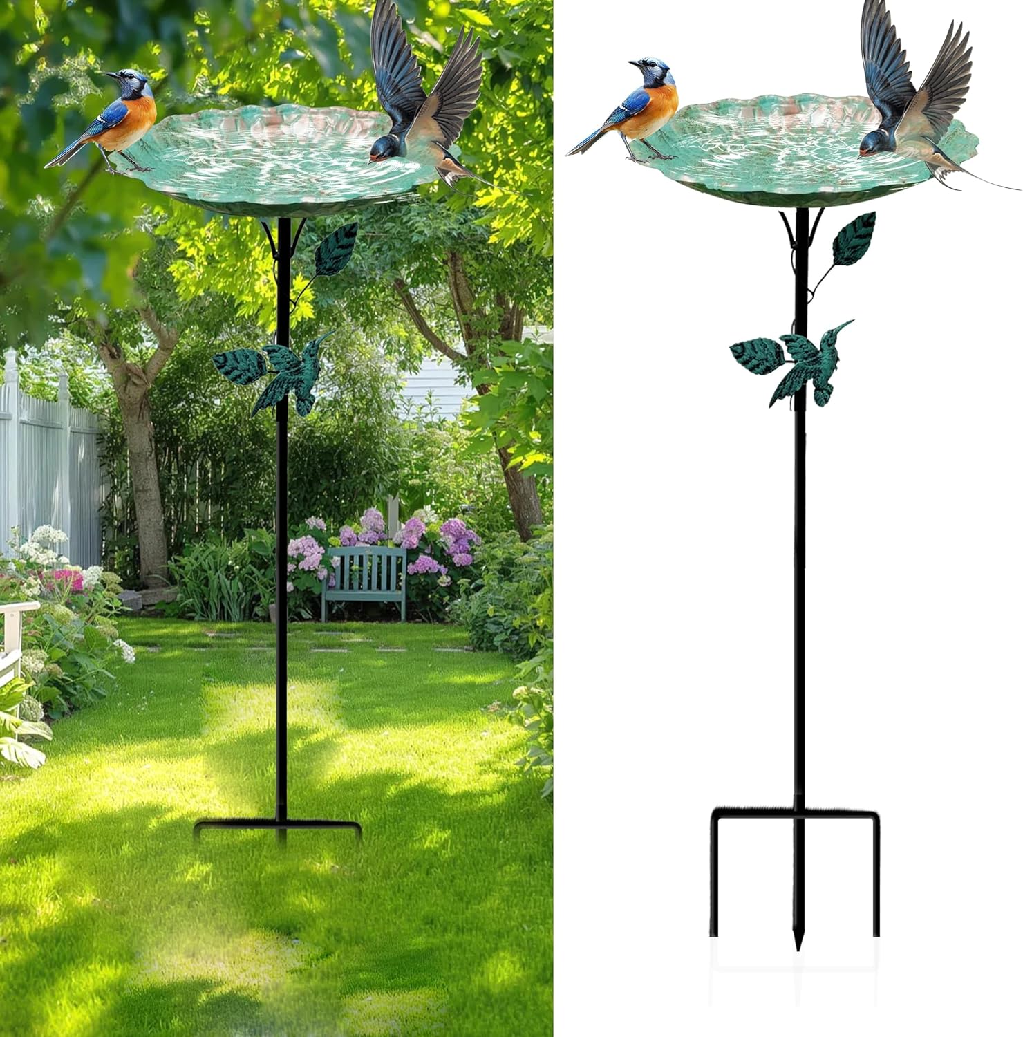 - 【Durable, Weatherproof, and Rust-Resistant】: Crafted from high-quality metal and coated with a safety protective layer, this bird bath is built to last. It resists rust, fading, and breakage, unlike plastic or glass alternatives. It can withstand the elements, ensuring long-term outdoor use through all seasons. Even in colder climates, it can be used with a bird bath heater or deicer during winter months.