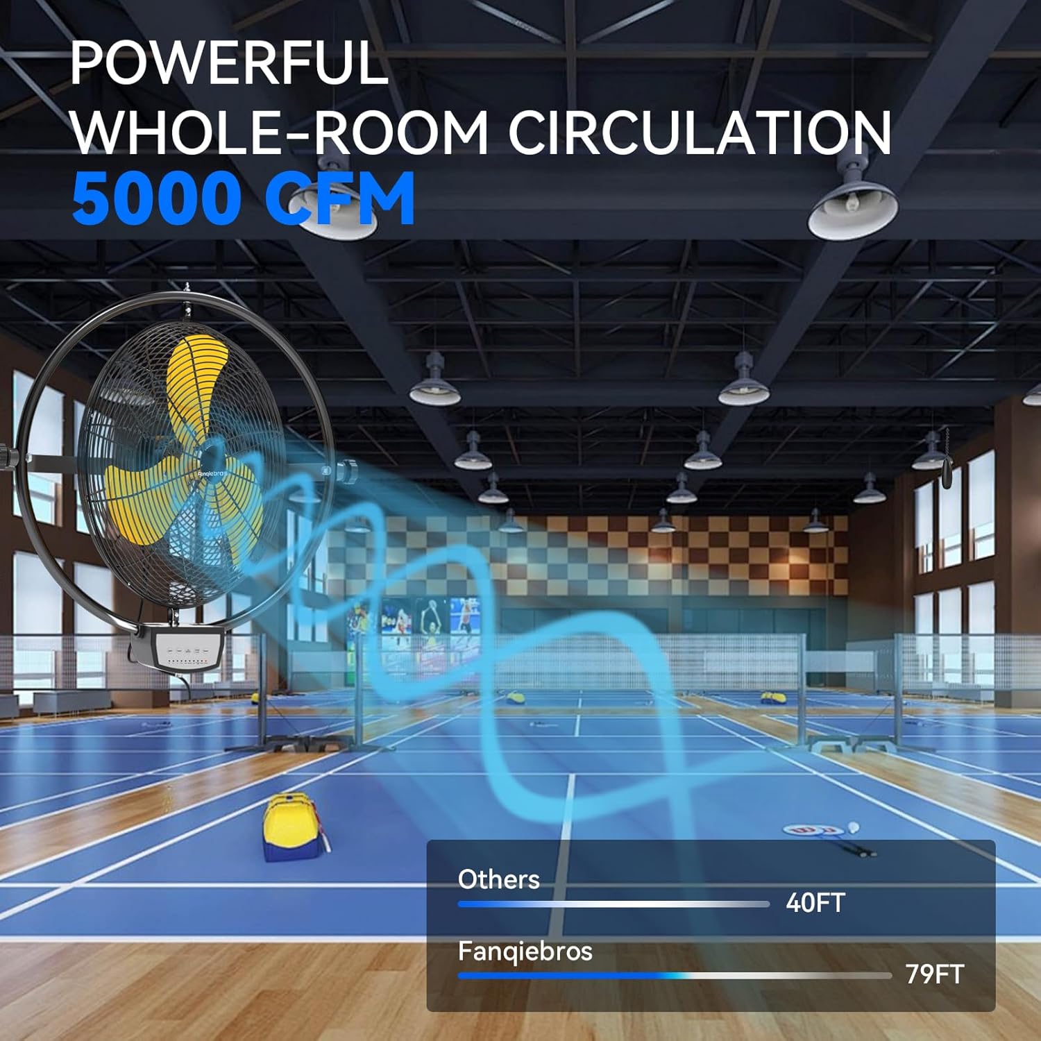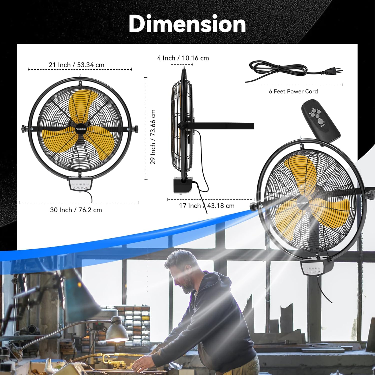 - 𝐋𝐨𝐰-𝐍𝐨𝐢𝐬𝐞 𝐃𝐞𝐬𝐢𝐠𝐧 - With optimized motor and vibration reduction technology. When running at a high speed of 5000 CFM, the noise level is only 59 dB, this wall fan is lower than the industry standard, creating a quieter gathering or working environment