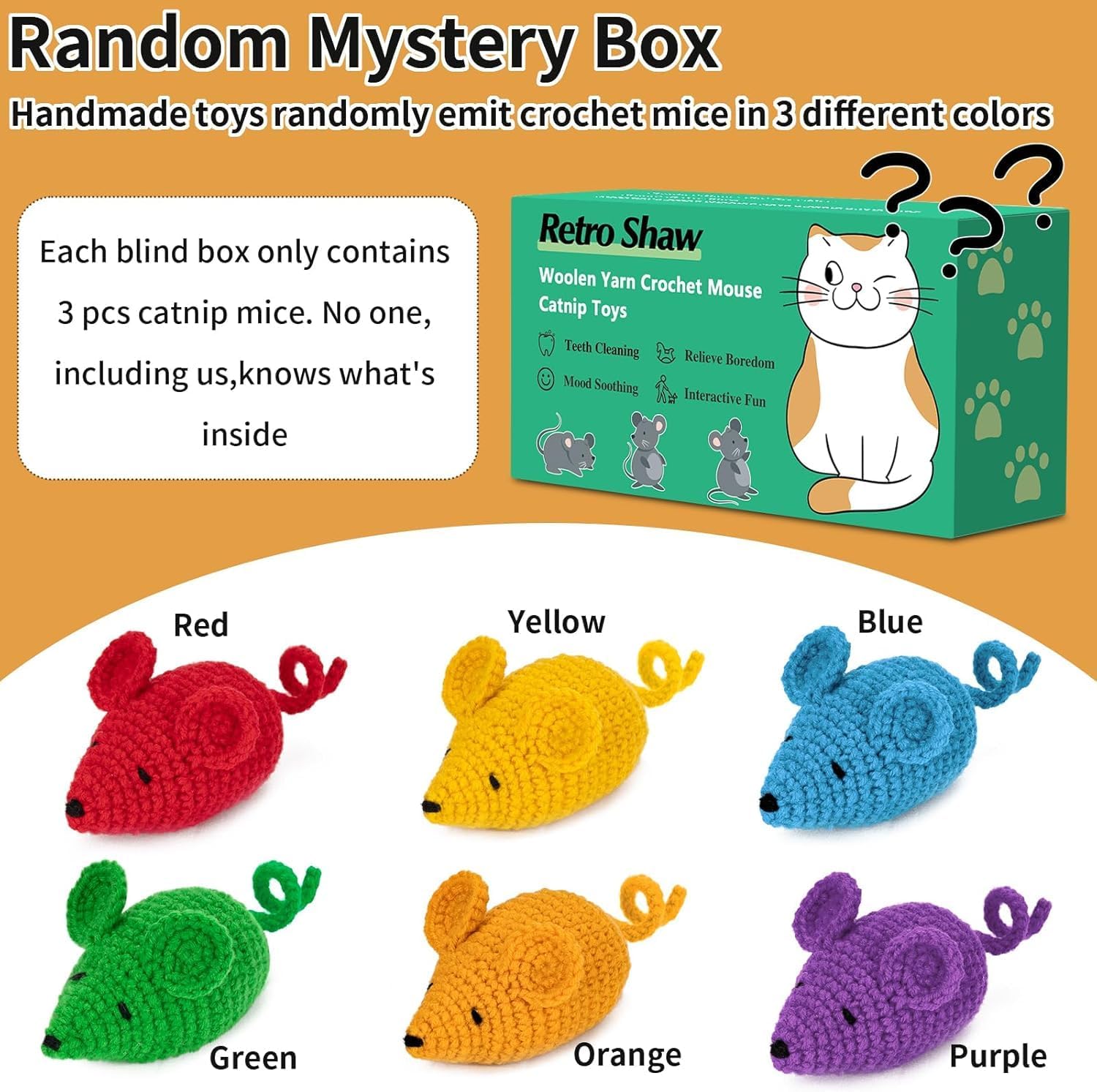 - All Handmade: This cat mice toys is hand-knitted,well-made and durable,cute design and vibrant colors that cats love.Your kitty will enjoy batting and swatting this minty chew toy during interactive or solo play.