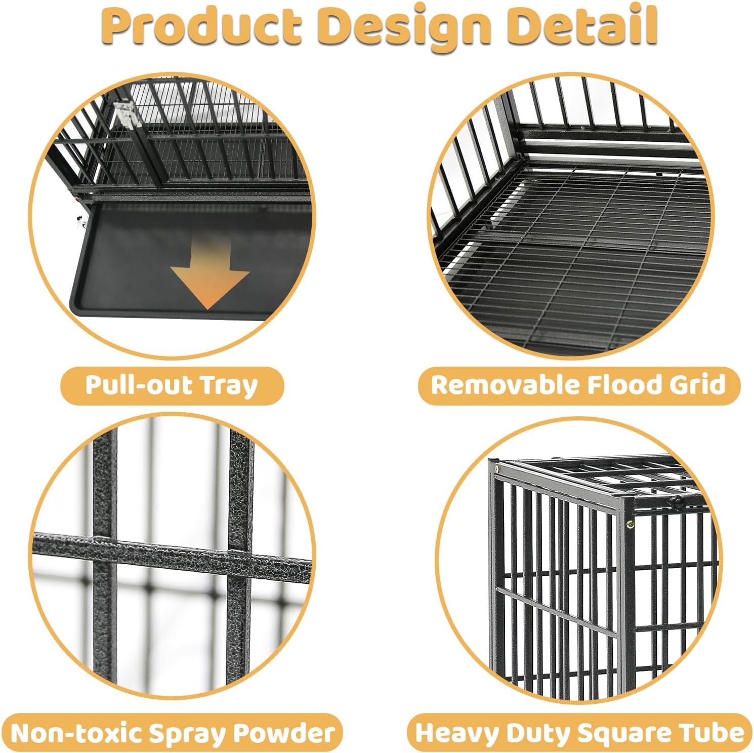 - Heavy Duty All-Metal Structure: This heavy duty dog crate is designed with a steel tube frame and thickened panels, which is sturdy and durable. The surface is coated with non-toxic powder coating to enhance rust resistance, provide long-lasting protection and durability