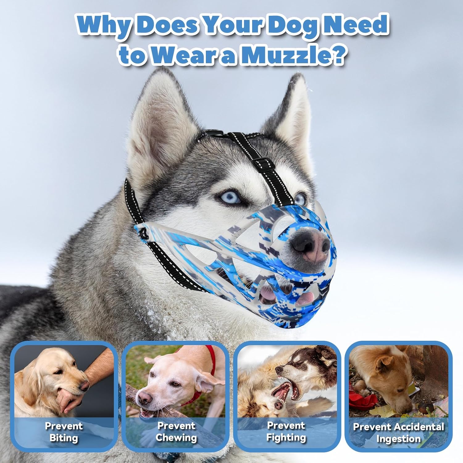 - Quick & Secure Fit with Reflective Straps: Putting the muzzle on and taking it off is a breeze thanks to the adjustable, user-friendly strap system. Designed for a snug and secure fit, it stays in place even during active moments. The built-in reflective straps add extra safety for nighttime walks or low-light environments.
