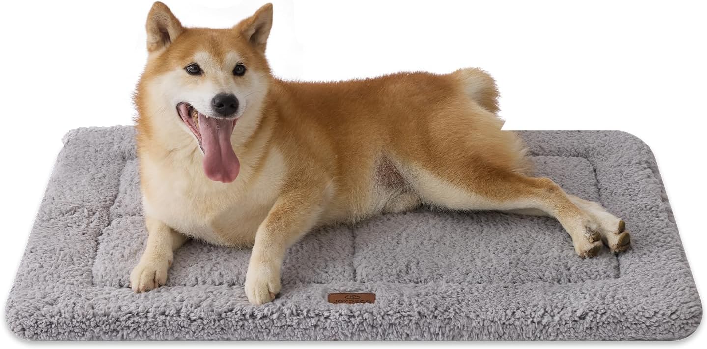 Joydeco Low Profile Dog Crate Mat Reversible Bed Pad, Washable Dog Pad Mat with Ultra Soft Fleece, Compact Design Kennel Beds Mats for Large Medium Small Pets, 35" x 23" Gray