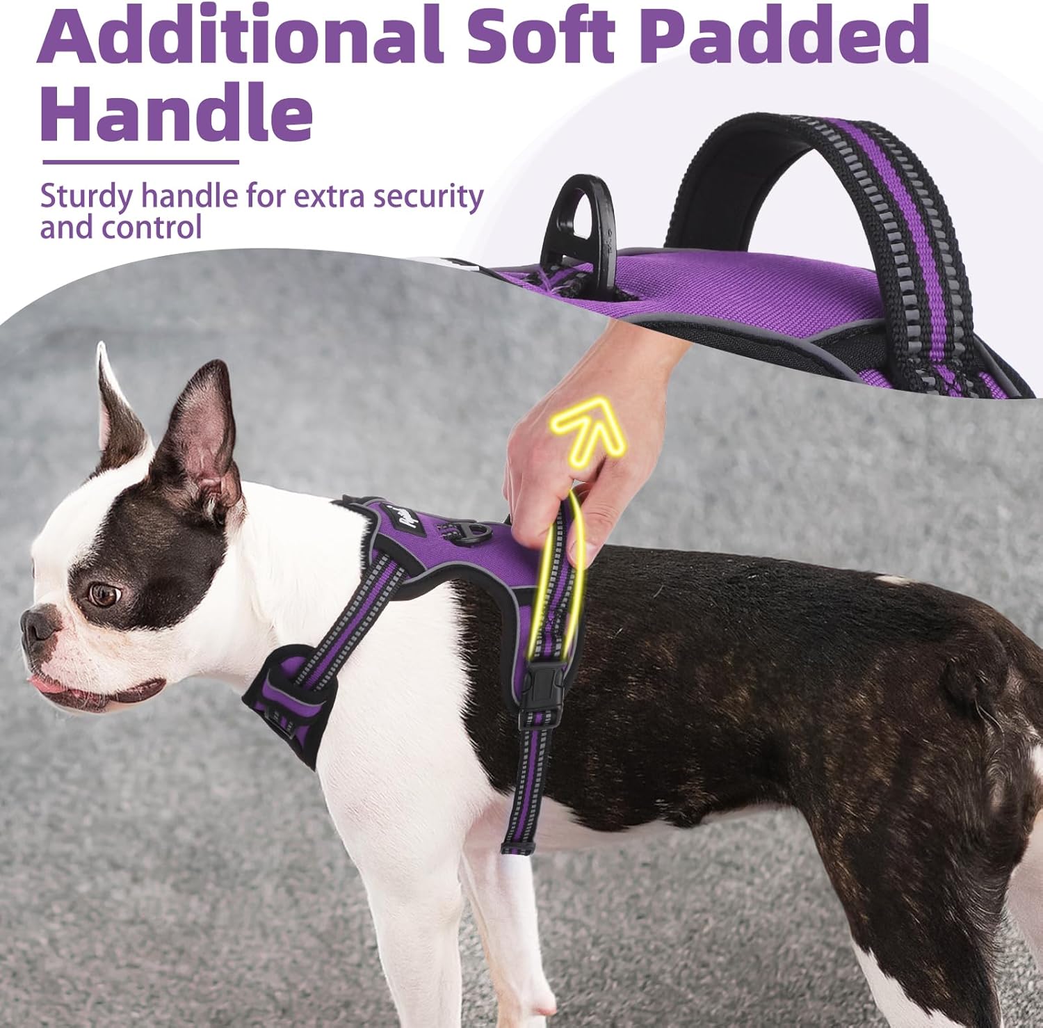 PUPTECK No Pull Dog Harness Medium Sized, Adjustable Reflective Dog Harness with Handle Easy Control, Comfortable Soft Padded Pet Vest Harness for Medium Dogs, Solid Purple M