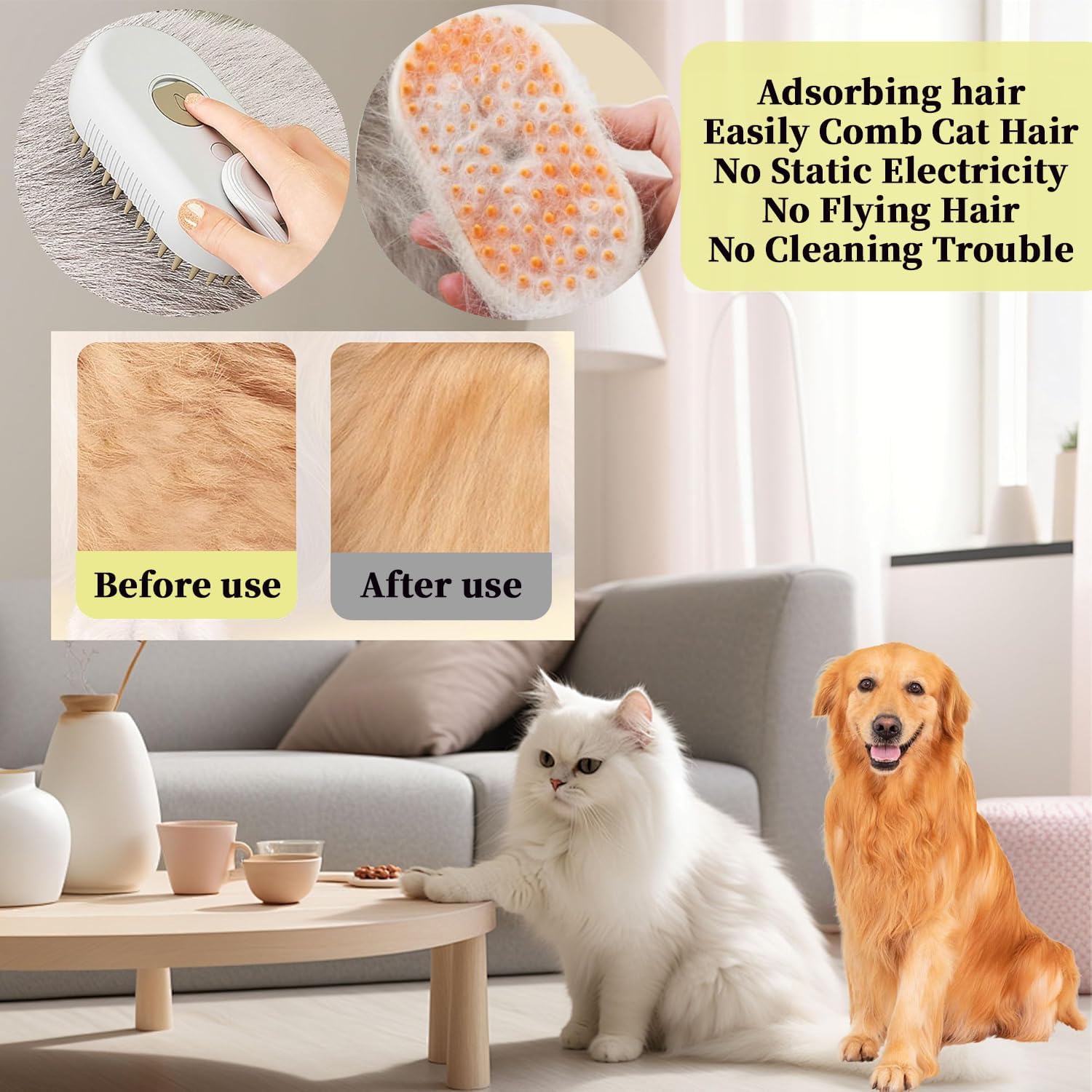 4-in-1 Cat Steam Brush for Shedding & Grooming, Spray Hair Removal Comb, Cat Brush for Massage, Pet Grooming Comb Hair Removal Tool for Cats and Dogs
