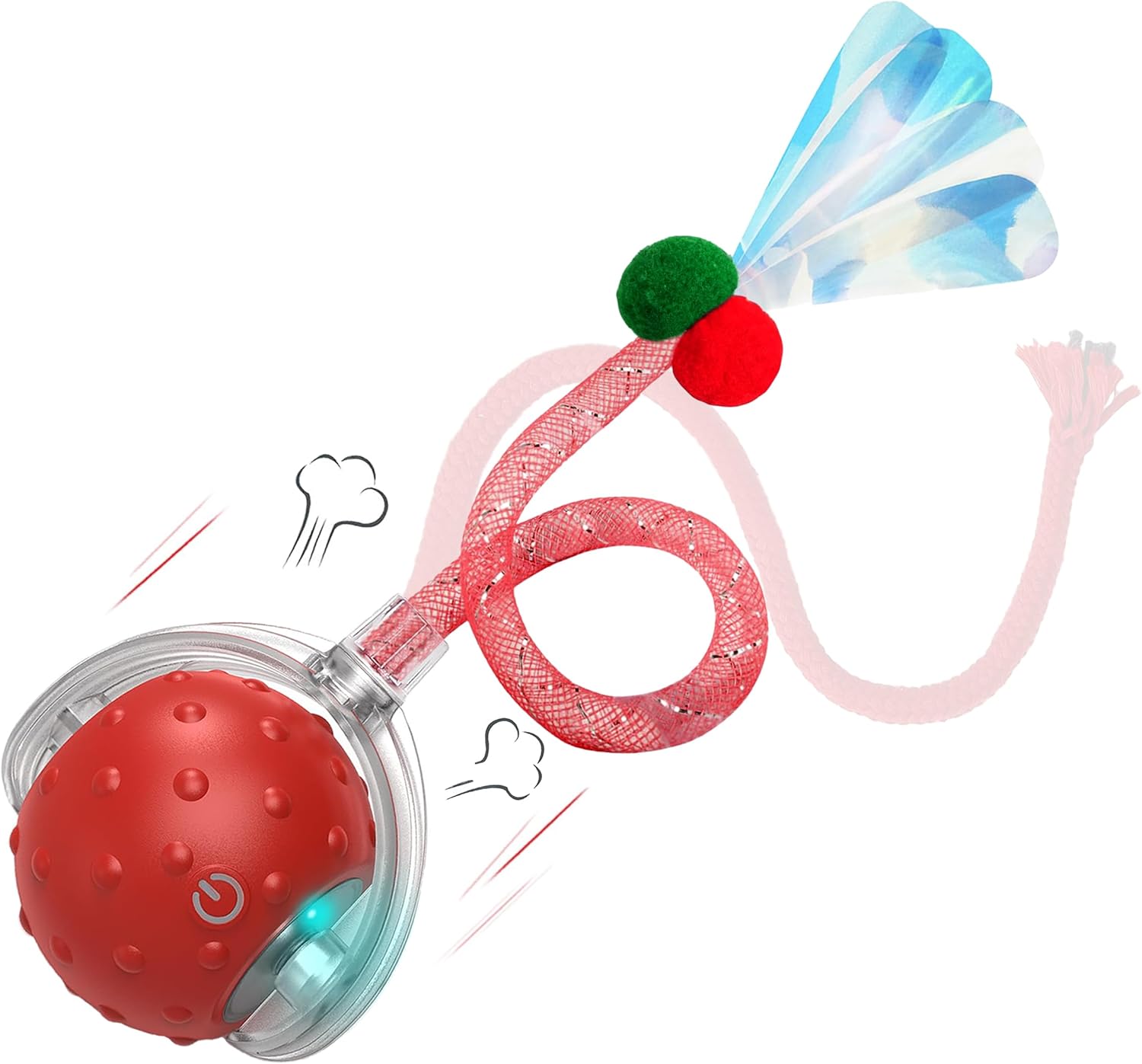 - Realistic Prey Simulation An elastic mesh tail with a furry pom-pom and integrated mimics the erratic movements of a mouse, while a chirping bird sound, tuned to cat-friendly frequencies, draws attention without causing stress. Two replaceable tail accessories are included for extended play and variety.