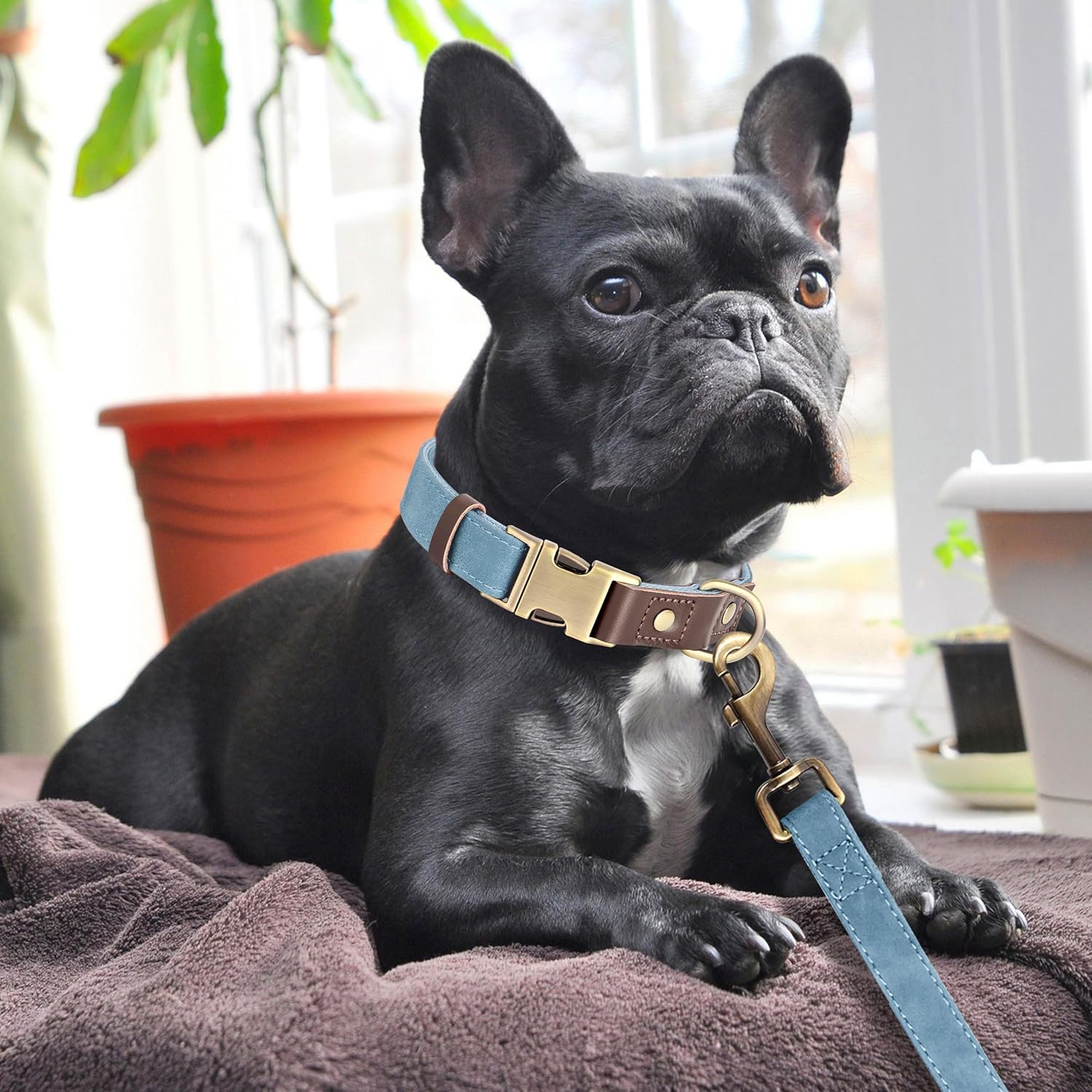 Didog Soft PU Leather Dog Collars for Medium Dogs,Classic Adjustable Dog Collars with Quick Release Metal Buckle,Easy Clean and Comfortable with Nylon Lining,Denim Blue,M Neck 13-19"