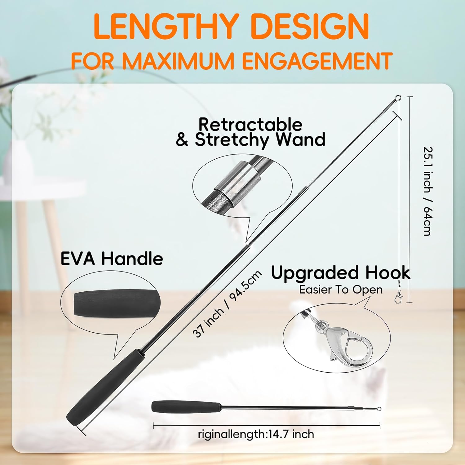 - [Generation Suction Cups]-Large diameter suction cups can withstand 30 lbs.Super suction and reusable sticky bottom make the suction cup stable and durable.2 suction cups set inside the package allow you to stick to multiple places at the same time for cats to play.the suction cups in the Cat Wand Toy Set can be removed.