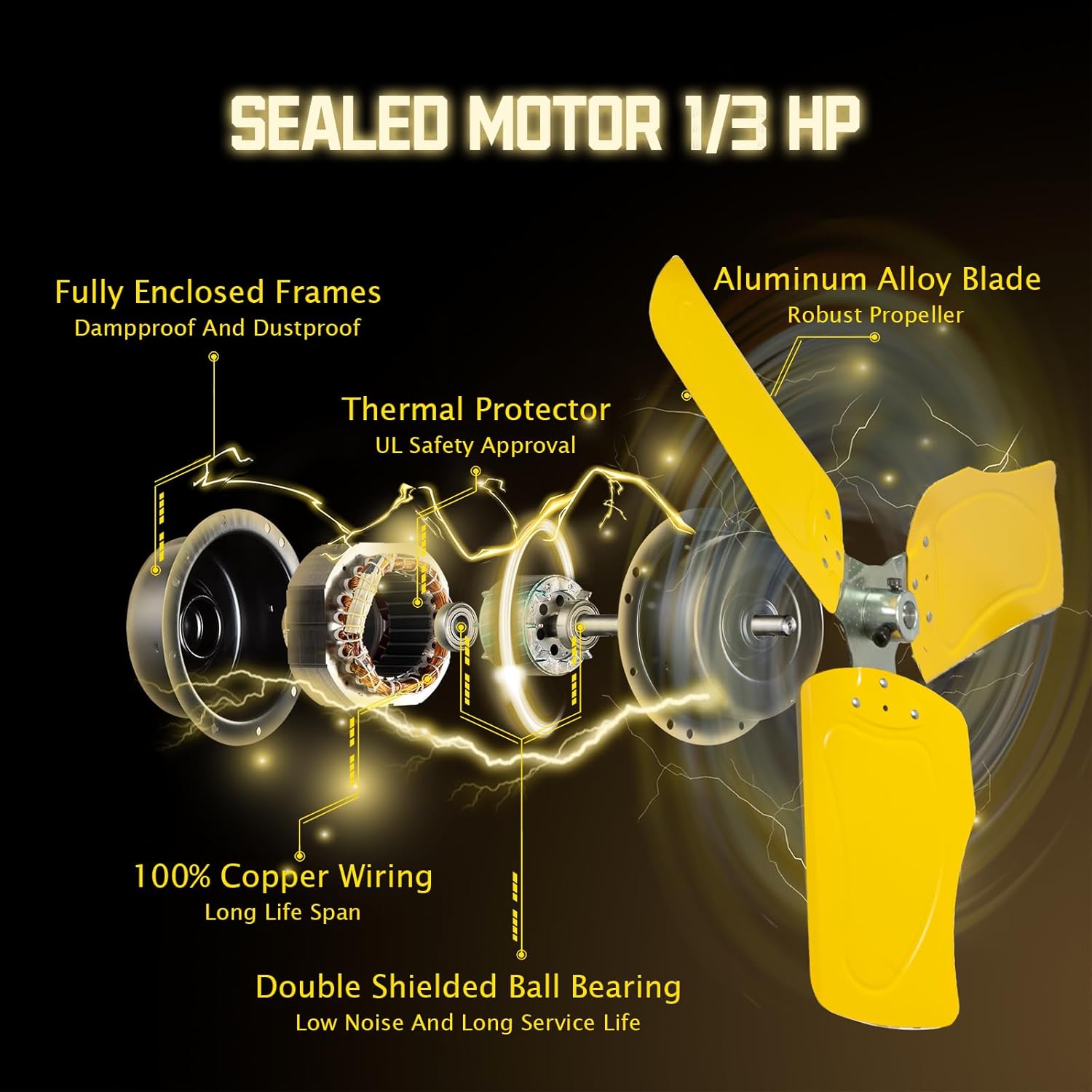 - 【Moves Much Air】: Built with 1/3HP Premium TEAO Enclosed Motor and Shielded Ball Bearings, this heavy duty industrial wall fan provides circulating breeze for large spaces, blowing distance reach 60 feet. It is ideal for Warehouse, Workshop, Factory, Garage, Basement, Greenhouse, Barn, Industrial, Commercial and Residential areas. High speed 9100 CFM / Low speed 7300 CFM