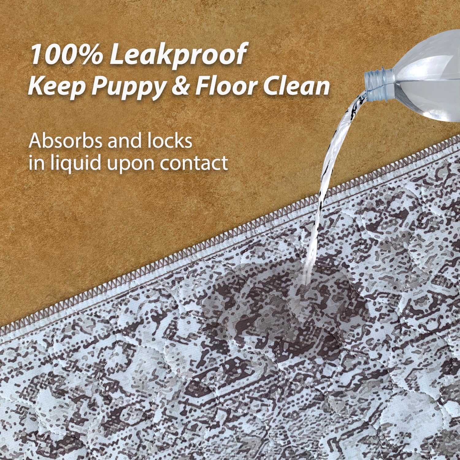 nunubaby Washable Pee Pads for Dogs, Stylish, Non-Slip and Leak-Proof Pee Pads. Reusable Potty Pads for Dogs for Crates and Floors.(Brown/Geo, 36" x72")