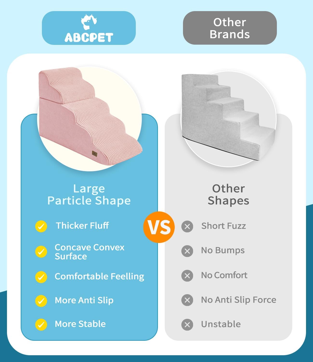 - Stronger Grip Anti-slip- The surface of this dog steps is made of larger fluffy particles. Stronger grip help your pet climbing to high bed or other surface, easily and safely. Combined with antislip bottom, this dog stair maintain stability during pet rushing to prevent pets from slipping