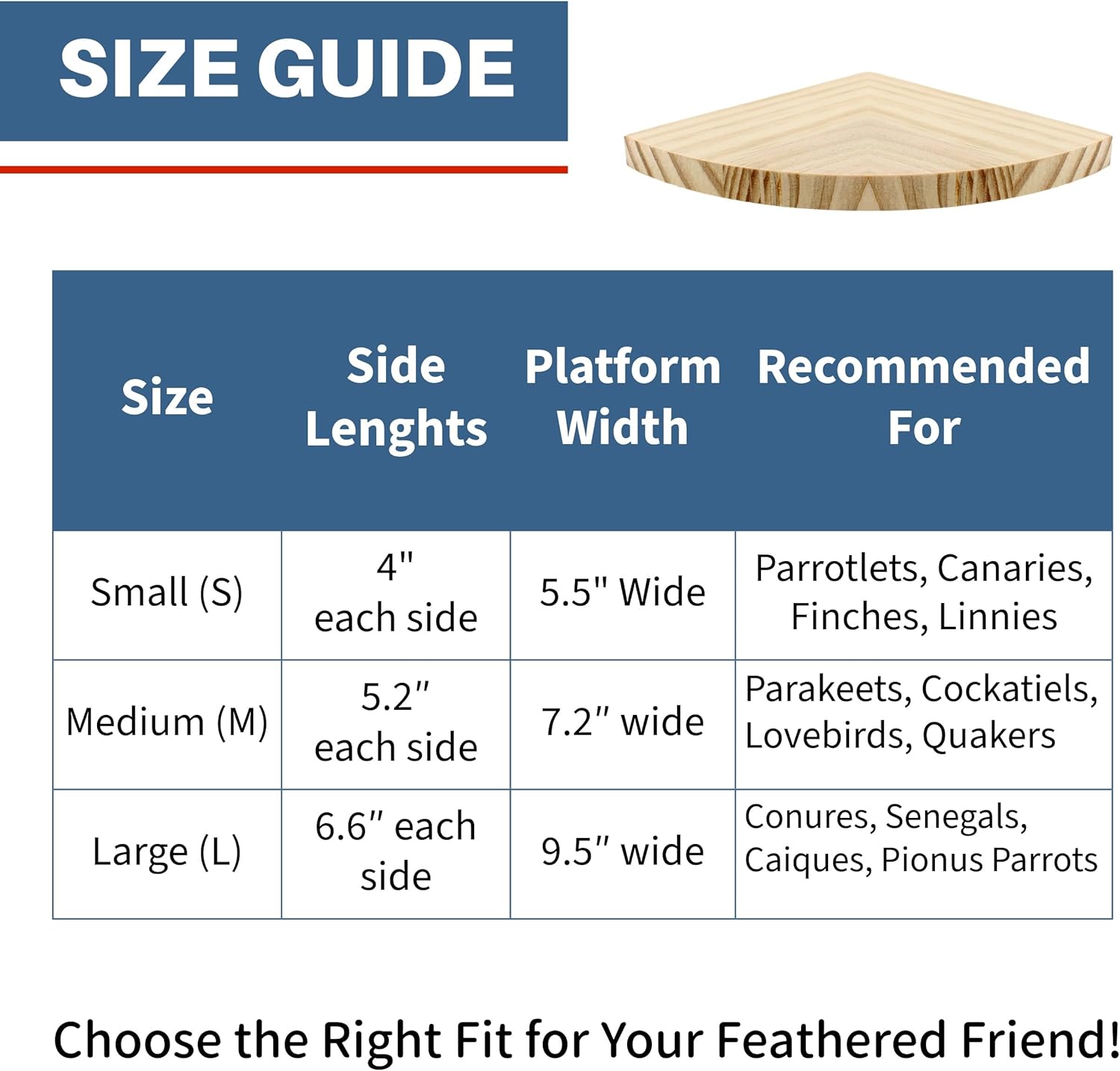 Bird Perch Corner Stand for Bird Cage Corner Platform Wood Bird Perches Corner Shelf Rest for Birds Parrots Cockatiels and Other Animal Pet Cages (Wood, Flat - Small)