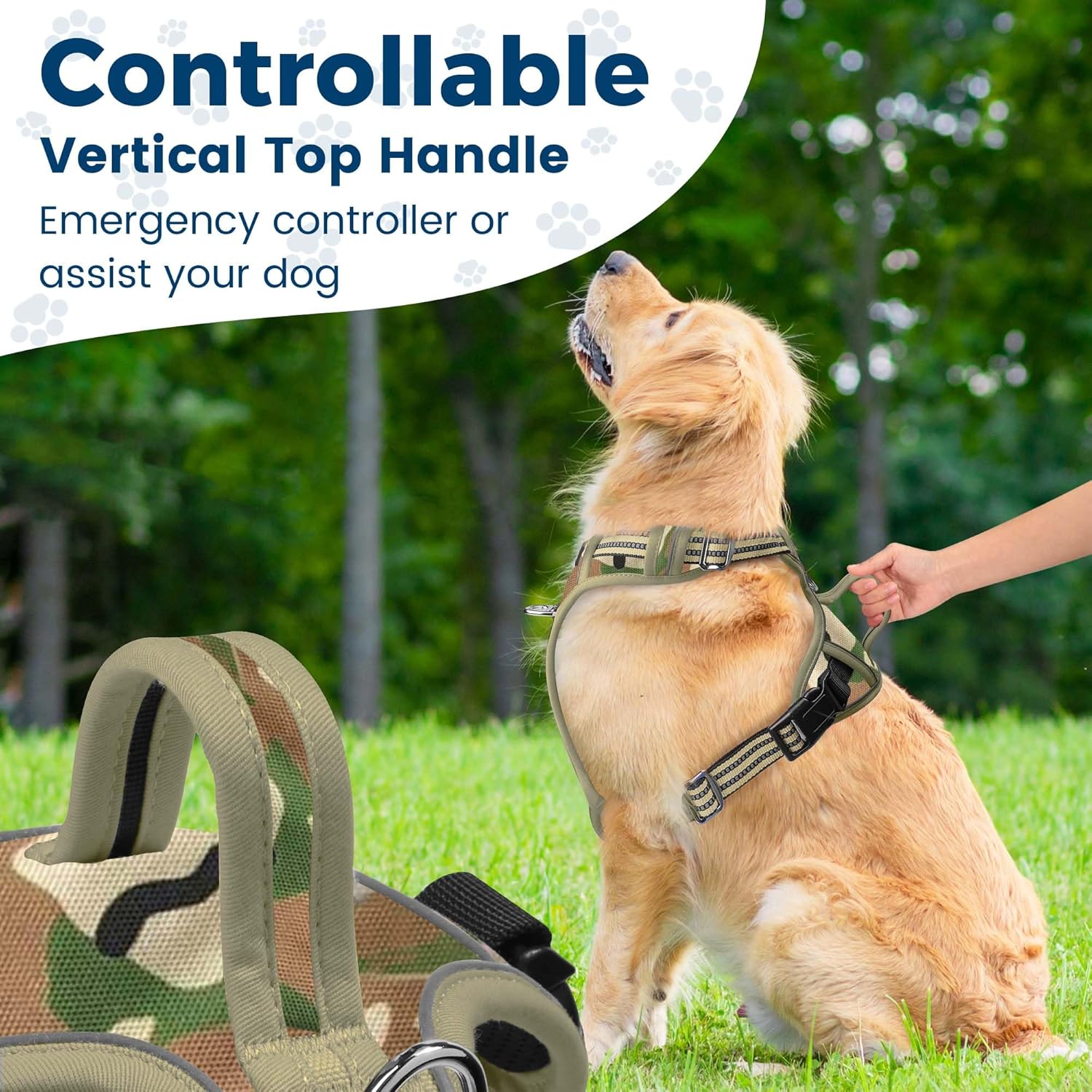 Funfox Dog Harness No Pull, Adjustable Pet Vest Harness, Super Soft Material with Vertical Handle Easy Control, Reflective Night Walking, 2 Leash Clips for XLarge Dogs, Camo Green, XL